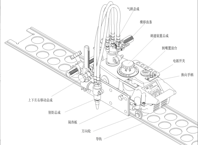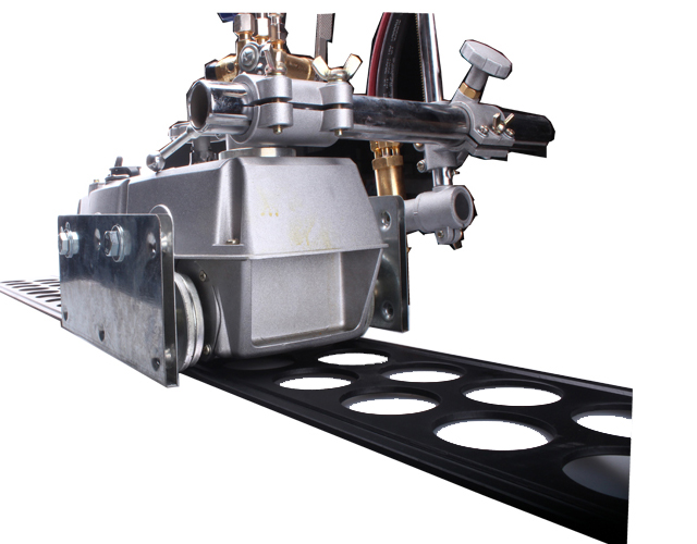 HK-5NX 切割機采用高強度鋁合錠材料,精密壓鑄制作,結(jié)構(gòu)設(shè)計合理,行走穩(wěn)定性好。本裝置調(diào)速系統(tǒng)采用機械式降噪保護無級變速系統(tǒng)調(diào)速,易于操作與維護。本裝置采用機械換向系統(tǒng)取代電子開關(guān),電機單方向運轉(zhuǎn),不需要頻繁正反轉(zhuǎn),延長電機使用壽命。本裝置割炬一側(cè)裝有雙層隔熱板,有效防止機身升溫,減少了切割時高溫和潮濕環(huán)境的影響。本機采用交流電機,自帶冷卻風扇,無須更換碳刷。根據(jù)用戶需要可同時安裝兩把割炬,進行坡口切割;用戶也可選購圓盤導(dǎo)軌和半徑桿進行圓形零部件切割。本裝置適用于造船、石油化工、橋梁建設(shè)及金屬鋼結(jié)構(gòu)等工廠。
